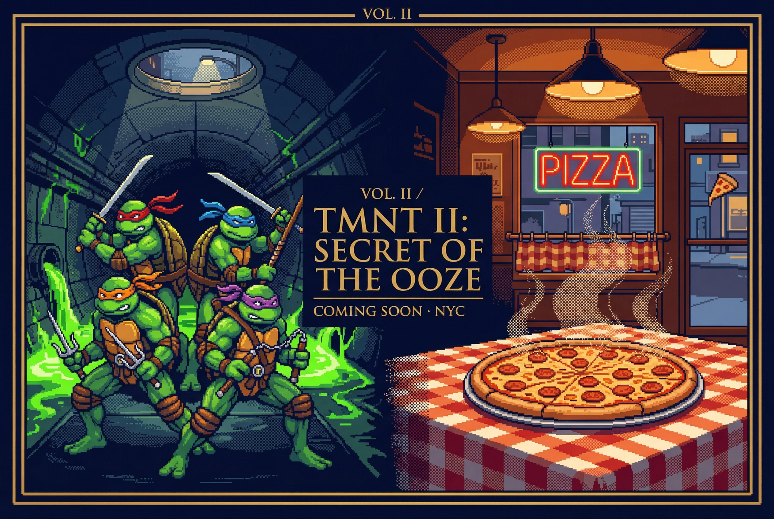 The original sewer-dwellers on the big screen — then pizza afterwards, because of course. Enough to make Michelangelo jealous.